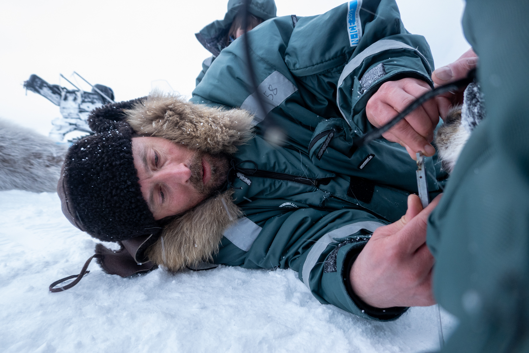 Forskerne fanger voksne dyr som de i tidligere år har merket med GPS-halsbånd, men også kalver som ble født i fjor.