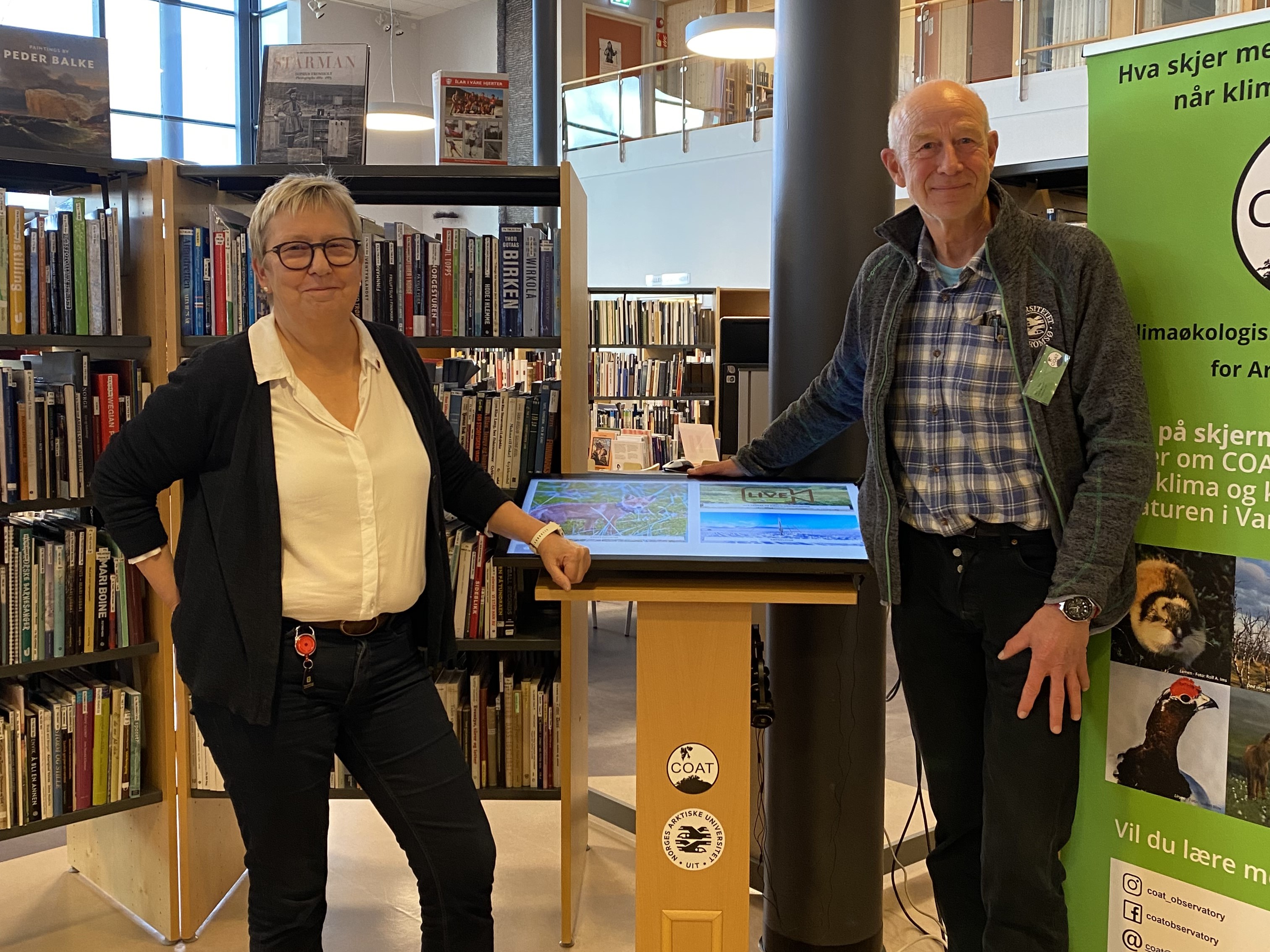 Infoskjermen er ment å være en enkel og interaktiv måte å skaffe seg kunnskap om arktiske tundra-økosystemer i Finnmark, lære mer om hva COAT’s overvåking av natur og klima i Finnmark består av, og hvordan COAT bidrar med kunnskap for en bedre forvaltning av arktiske økosystemer. Ta en tur til Vadsø bibliotek og bruk skjermen vår!