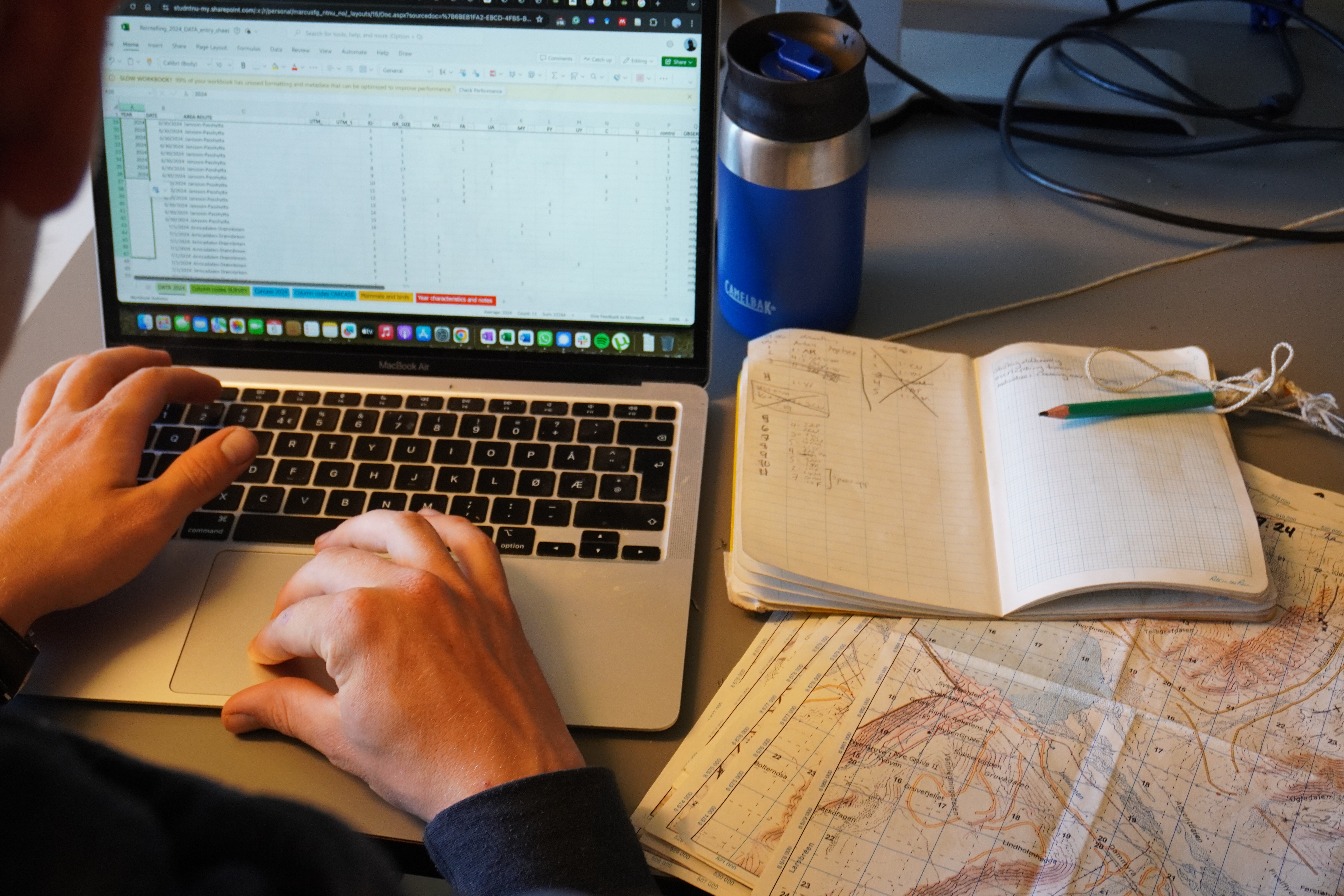 Anvendt forskning: Kun timer etter data er overført fra feltboken til dataskjemaene, blir tallene brukt for å fordele kvoten på svalbardrein. Foto: Guro Krempig