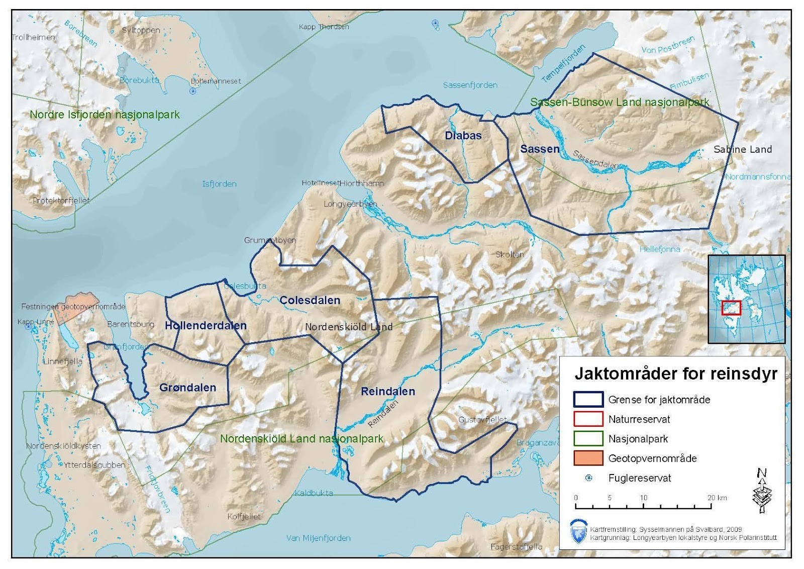 Forskrift om lokal regulering av jakt på svalbardrype og svalbardrein på Svalbard §§ 1-3 (2003). Lovdata.