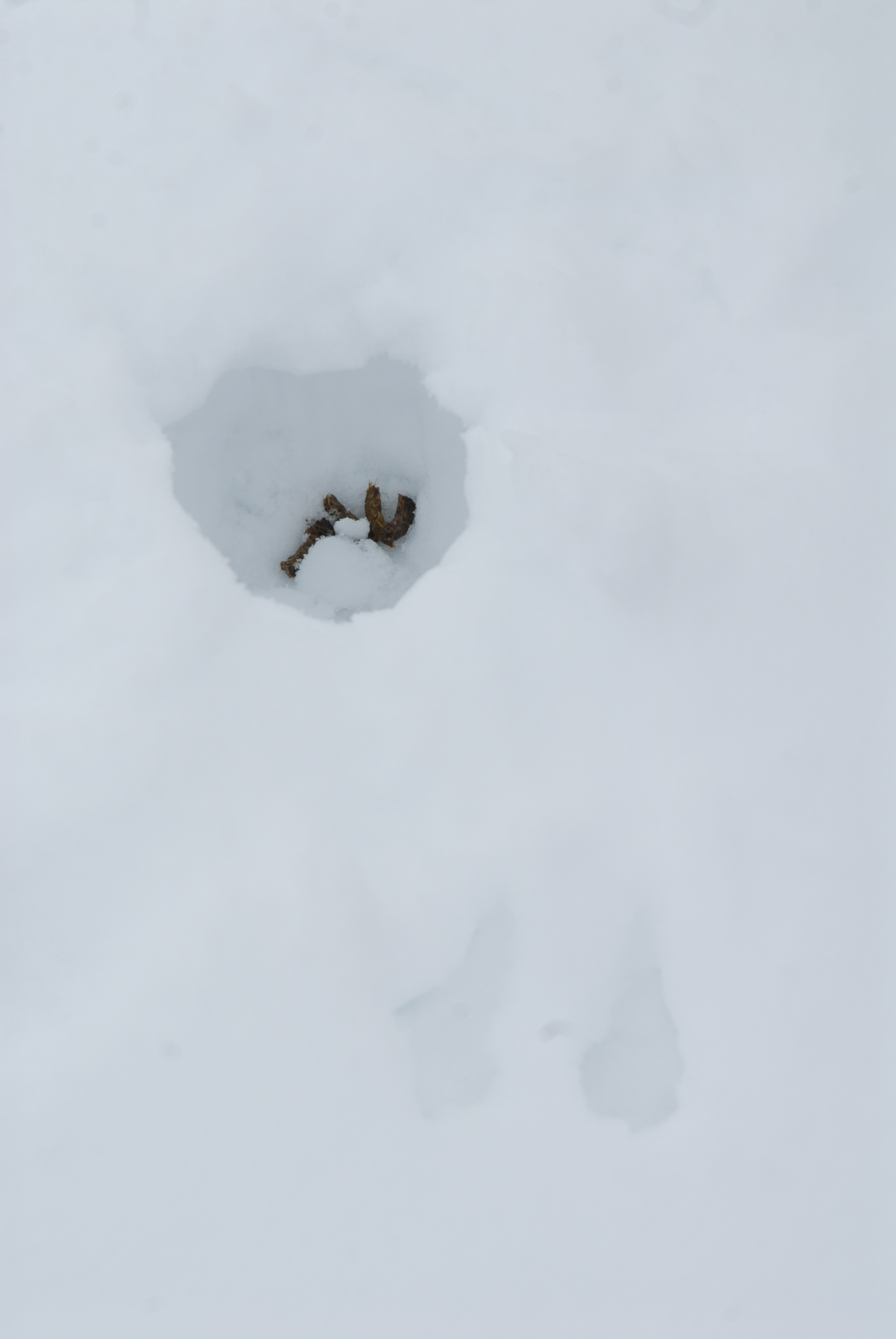Fjellrype - Giron - Kieruna - Rock Ptarmigan - Lagopus muta. Dyrenavnene i SPOR-boka er på 5 språk. Om vinteren søker rypene ly ved å "gå i dokk" om natten. De graver seg ned i snøen for å unngå lave temperaturer og sterk vind. Foto: Geir Vie