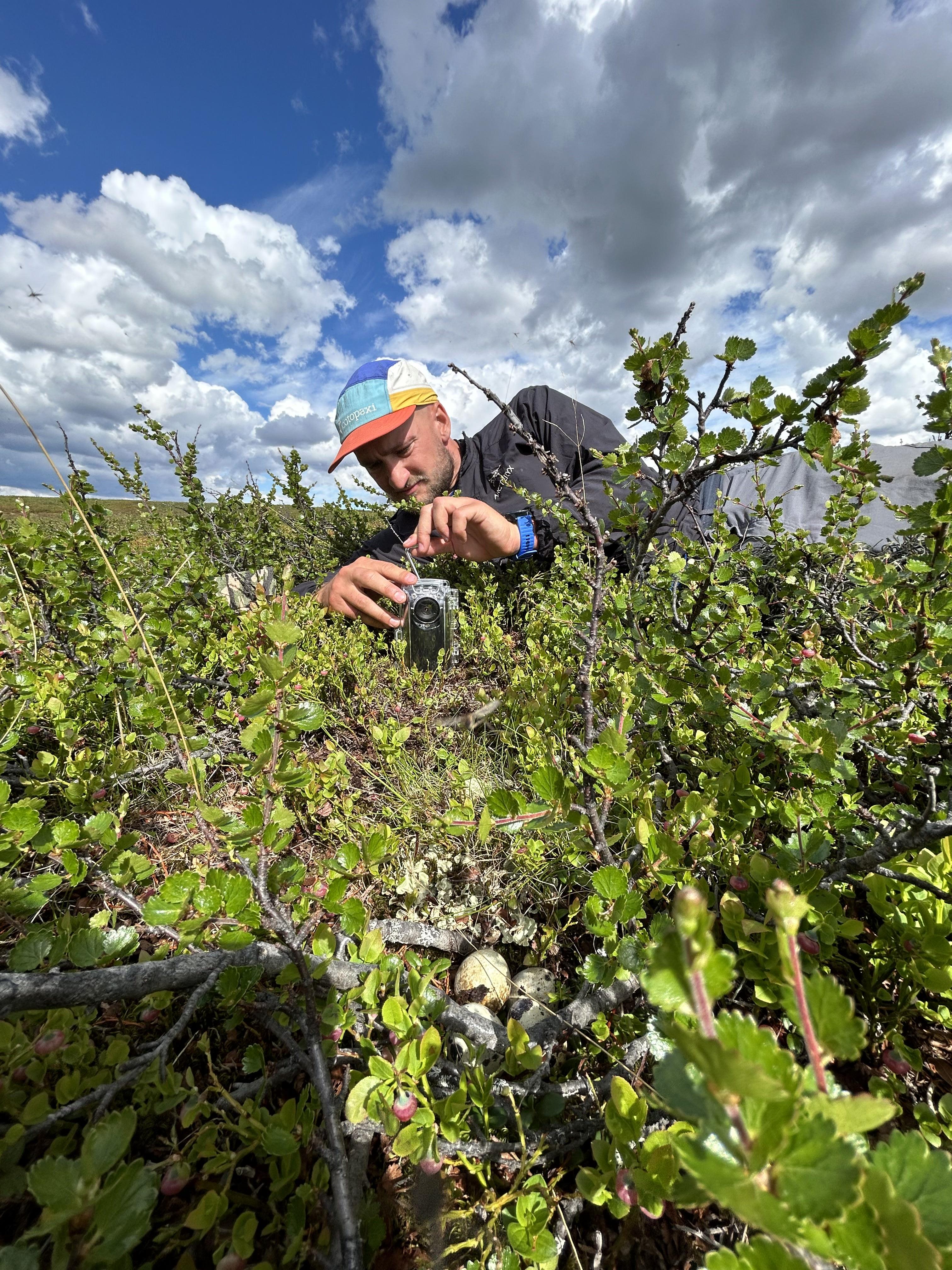 I år har vi testet en ny type kamerafelle for å overvåke reirpredasjon på bakkehekkende fugler. Vi prøvde ut et tidsforløpskamera med vidvinkelobjektiv, som kan plasseres på bakken 0,5 m fra reiret (se bilde). Til testen brukte vi kunstige reir med vaktelegg. Resultatene er lovende og vil bli formelt evaluert i en masteroppgave. Vi fikk også hjelp fra eksperter fra NMBU og Naturhistorisk museum i Oslo til å lete etter ekte reir av vadefugler, ryper, lappspurv og heipiplerke, slik at vi fra neste år forhåpentligvis kan bruke kamerafellene på ekte reir.