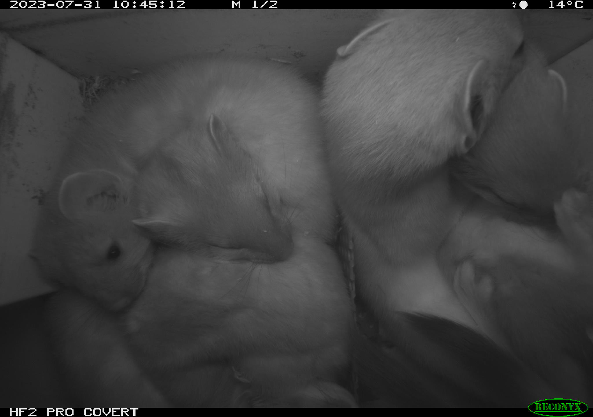 En hel røyskattfamile fotografert inne i en av våre kamerafeller. Foto: COAT