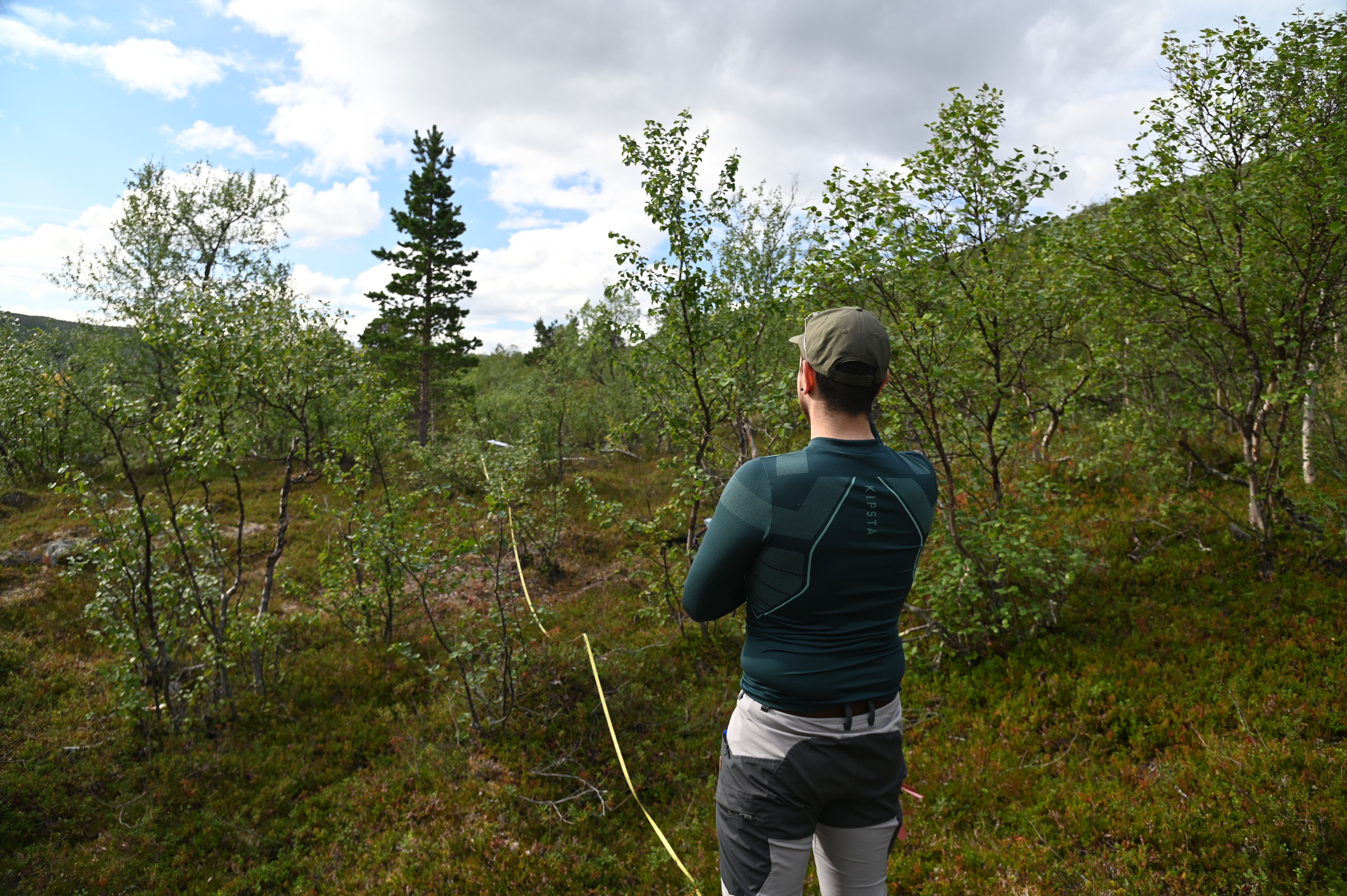 Fieldwork in mixed forest conducted by the tundra-forest ecotone module. Photo: Lars Kråkenes