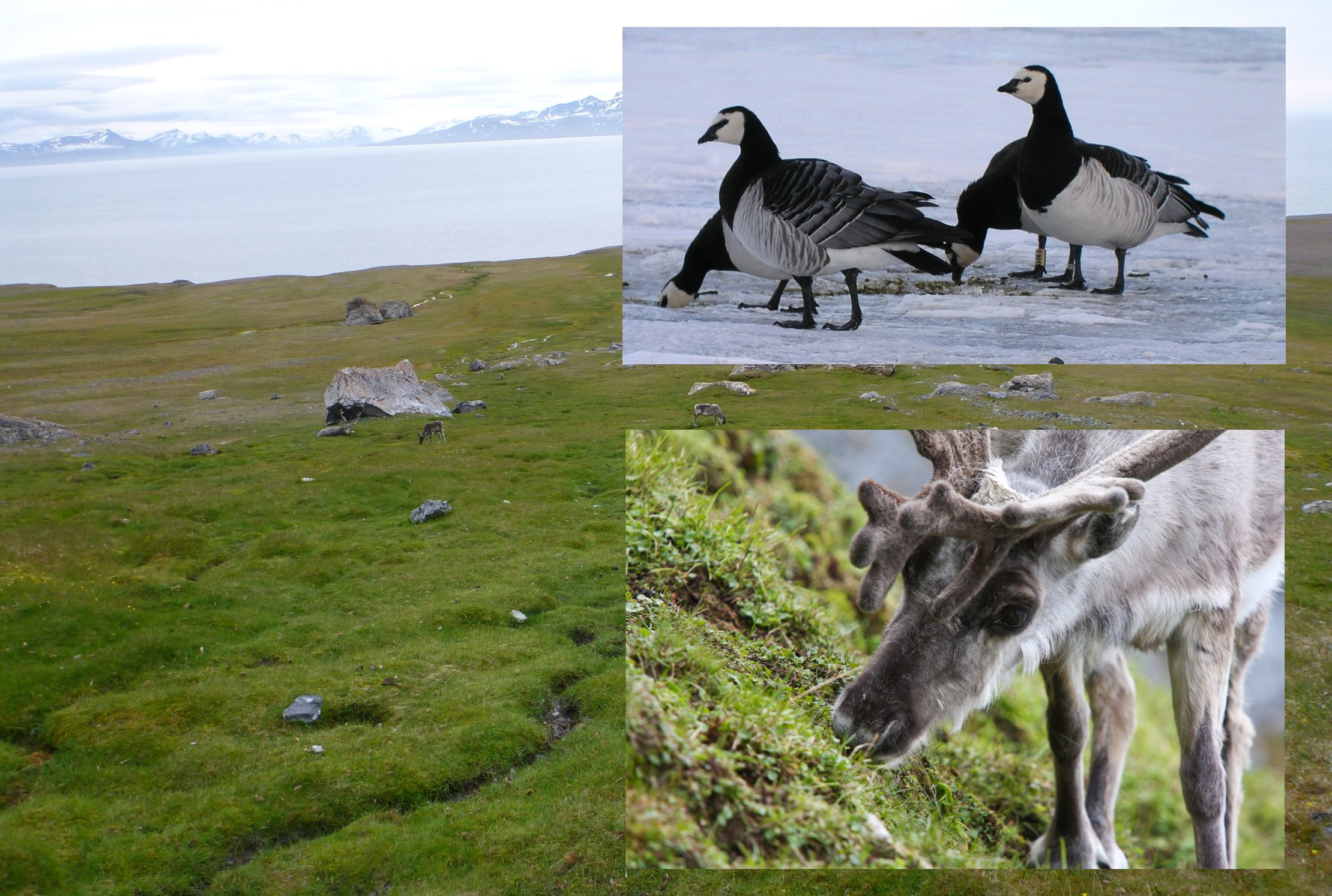 The high Arctic Archipelago of Svalbard is a scarcely vegetated but still supports large populations of several herbivores. Svalbard consists of approximately 60 % glaciers, 25 % barren and sparsely vegetated areas, leaving only 15 % vegetated areas for the herbivores.